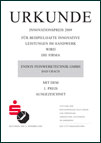 Urkunde zum Innovationspreis 2009