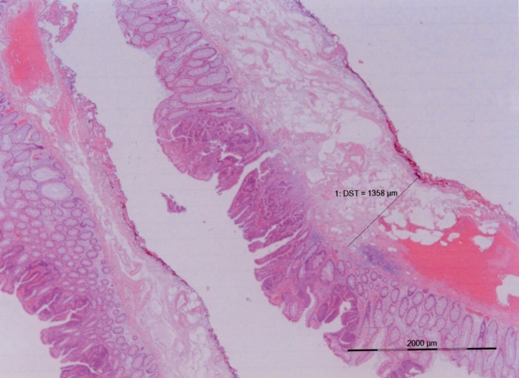 Eines der ersten Ergebnisse einer ESR mit einem Flat Adenoma Resection Instrument (Resekteur: OA Dr. med. S. Gölder, III. Med. Klinik des Zentralklinikums Augsburg, CA Prof. Dr. H. Messmann) bestätigt die Erfüllung der o.g. Anforderungen der Onkologie und Pathologie.