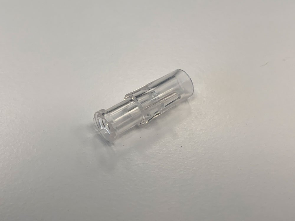 Zubehör ist der Dispenser selbst, hierzu gehören der Schlauch und die Clipse. Dieser kann weitere Details beinhalten wie einen Spülansatz (Luer) oder eine Einführhilfe.